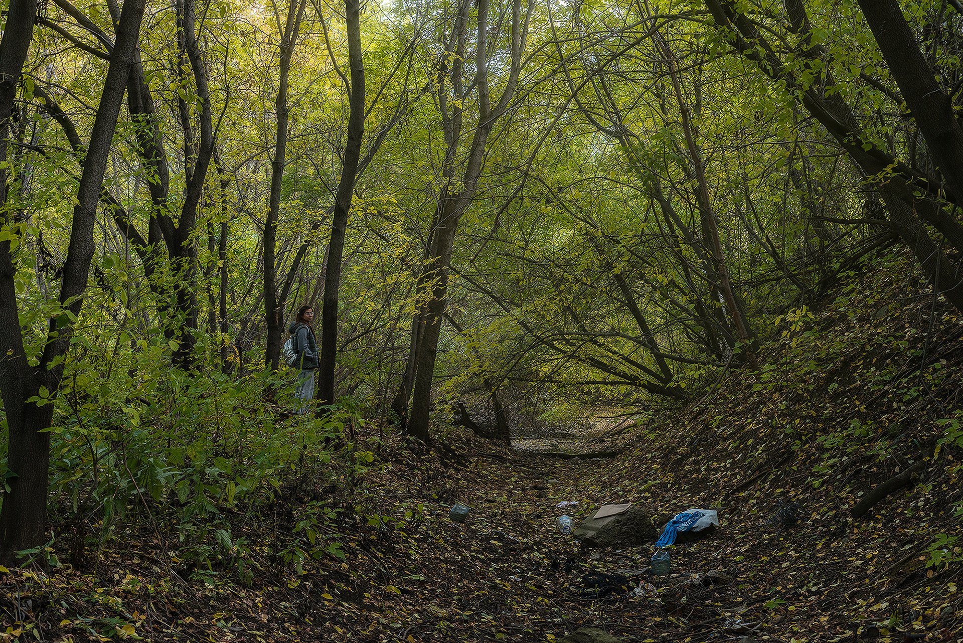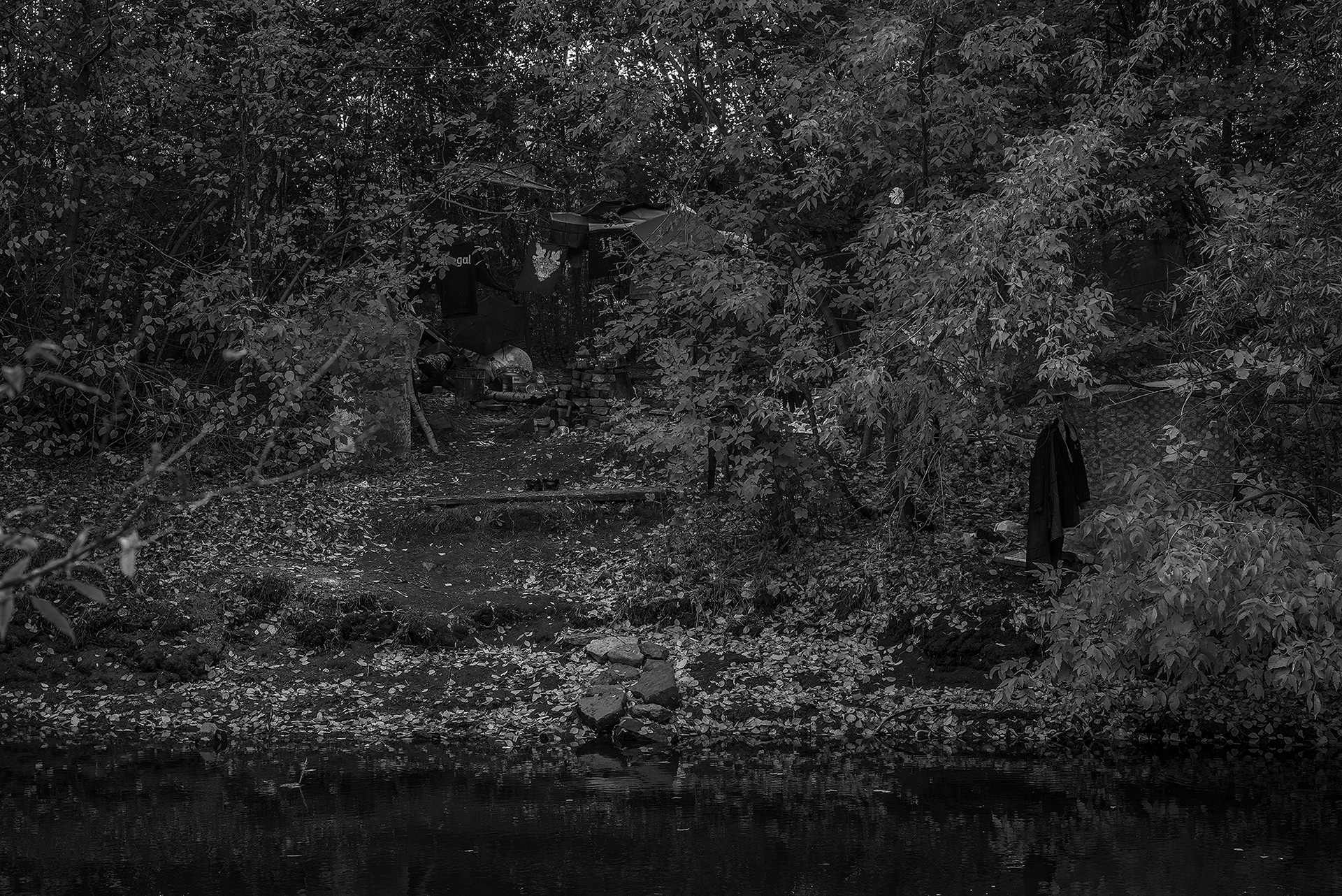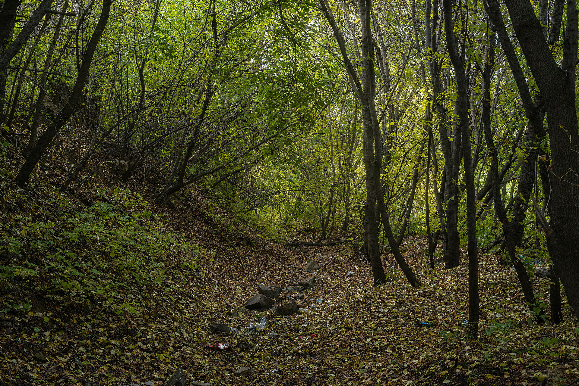 В это с трудом верится, но в центре Екатеринбурга существует абсолютно дикий берег Исети. Набережная от ул. Куйбышева до Царского моста в полном смысле существует только по левому берегу, затем прерывается, переходя в самый настоящий лес, и продолжается по тому же левому берегу под мостом на ул. Фурманова. Лес, что начинается на правом берегу в районе цирка, продолжается по обе стороны после Царского моста вплоть до моста на ул. Фурманова. Атмосфера у этого места своеобразная: весь дикий берег находится в низине, на 5-10 метров ниже города, что создаёт тишину. Густые деревья скрывают высотки, и о городе быстро забываешь. Заросшие и подтопленные (не приспособленные для прогулки) ландшафты выглядят очень необычно: иногда они напоминают джунгли, иногда декорации старых вестернов. Но, частые свалы мусора быстро возвращают мысли к реальности. За 2 часа исследования данной локации мы не встретили ни одного человека, но периодически натыкались на жилища. В просветах между листвой город напоминал о себе высотками.