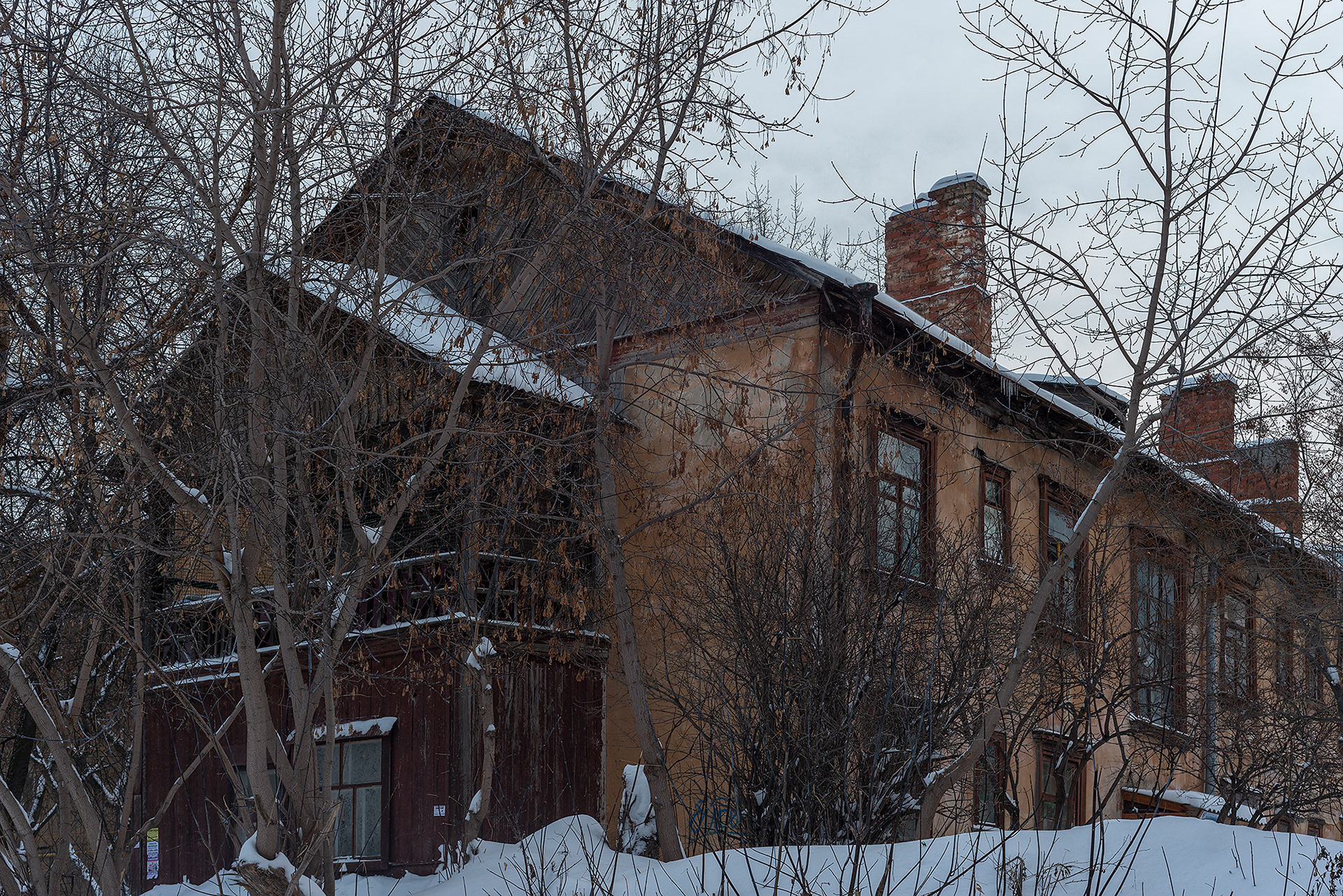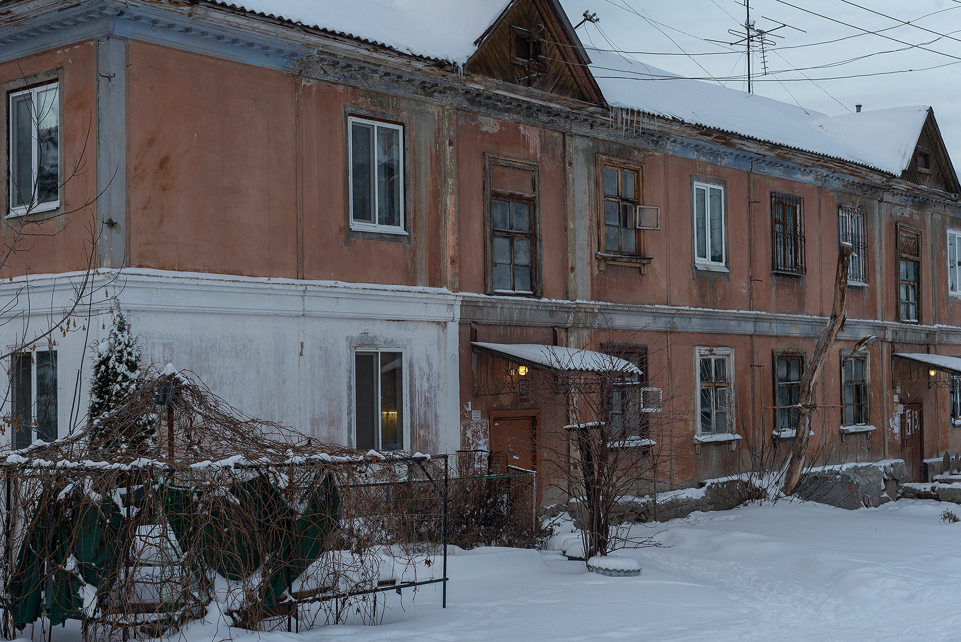 Продолжаю исследовать старый Екатеринбург, на этот раз опять втузгородок, улица Вишнёвая. Что в ней необычного? Она может перейти перпендикуляром в себя же. Также именно на этой улице сошли перед смертью с поезда Романовы (им оставалось жить всего несколько дней), даже есть табличка памятная, судя по которой епархии небезразлична Вишнёвая. Храмов тут нет. Ещё на улице множество домов 1940-х. Впечатление просто невероятные, если оказаться тут случайно, то никогда не угадаешь, какой год — время как остановилось, не тронув даже мелочей: дверных ручек, окон, колонок с водой. В остальном — всё как везде: старики, дети, семьи. В социальном смысле улица Вишнёвая просто брошена на произвол судьбы, её регулярно обворовывают, так как голос местного жителя — пустой звук, который никто не услышит. В это сложно поверить, но такого мнения тут придерживаются все, с кем я общался — не я это придумал. Все деньги налогоплательщиков и сборы на капремонты просто исчезают. При этом людям ничего не говорят, их просто игнорируют. Никакого благоустройства тут не происходит на протяжении многих десятков лет. Единственное детское муниципальное образовательное учреждение превратили в кормушку, там сейчас сидят арендаторы, среди которых автошкола. Детей там не было уже многие годы, они играют на улице и в промзоне, расположенной по соседству.