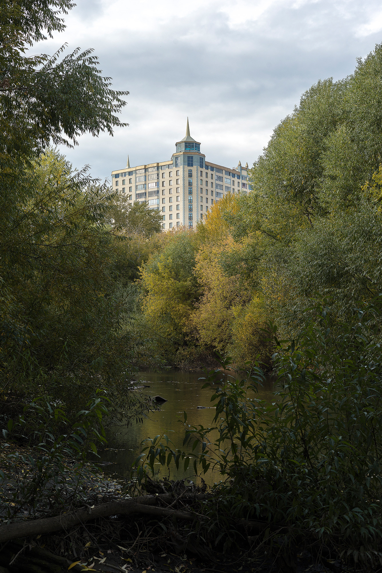 3 августа 2018 г. Свинцовое грозовое облако над обмелевшей Исетью и один из самых противоречивых видов на город, демонстрирующий все прелести точечной застройки